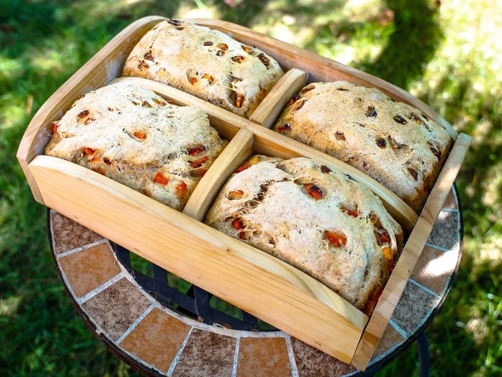 Die Holzgarschale verfügt über einen herausnehmbaren Einsatz, der es ermöglicht 4 kleine oder ein großes Brot zu backen.