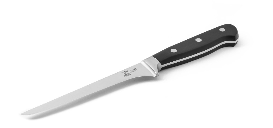 Das Ausbeinmesser - Klaus grillt Edition hat eine Klinge aus rostfreiem Chrom Molybdän Vanadium Edelstahl mit einer Klingenlänge von 15 cm und einem pflegeleichten Kunststoffgriff.