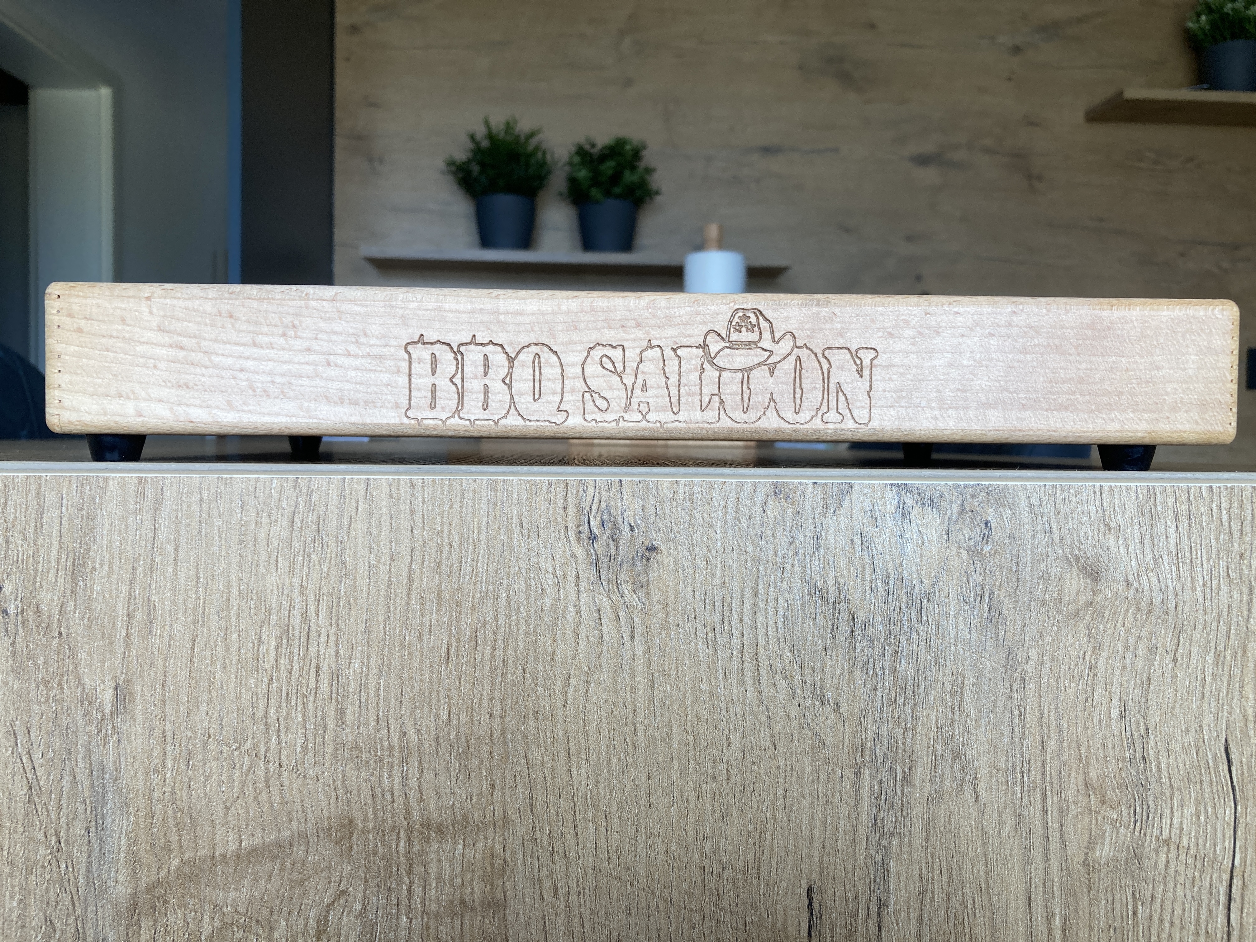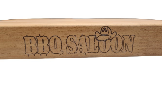 Passend zum BBQ Saloon wurde auf der vorderen Seite des Brettes unser Logo eingraviert.