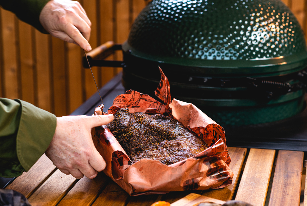 Das Big Green Egg Butcher paper vermeidet das Austrocknen deines Pulled Pork. Dein Fleisch wickelst du in dem Metzgerpapier ein und durch die natürlichen Fasern kann es atmen. Durch das Big Green Egg Butcher Paper wird die Temperatur bei der Zubereitung auf deinem Big Green Egg Keramikgrill gleichmäßig gehalten. Das Ergebnis lässt sich sehen. Ein zartes, rauchiges, mit einer knusprigen Kruste versehenes Stück Fleisch kannst du deiner Familie servieren.