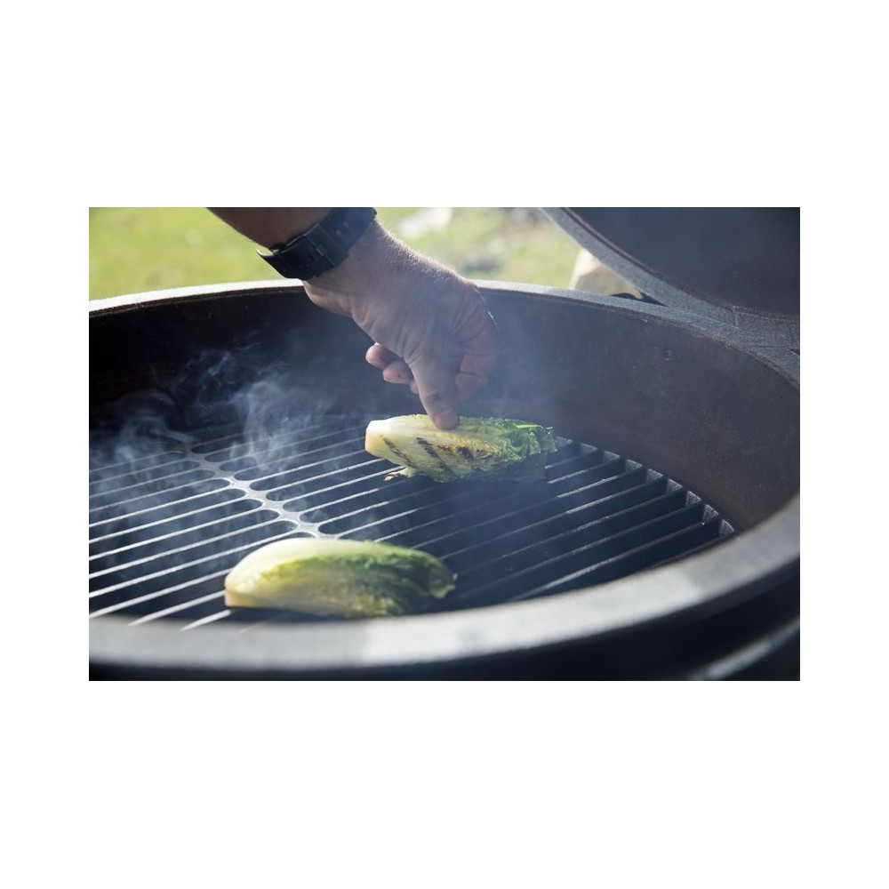 Mit dem Big Green Egg Gusseisenrost gelingt dir ein perfektes Branding auf deinem Steak. Es findet eine gleichmäßige Hitzeverteilung statt und es entsteht ein köstliches Röstaroma. Du kannst nicht nur Fleisch auf dem Rost zubereiten, auch Fisch, Gemüse, Meeresfrüchte, Geflügel, Spieße und Steaks. Es sind keine Grenzen gesetzt. Das Gusseisenrost wird direkt auf den Feuerring in deinem Big Green Egg gelegt.