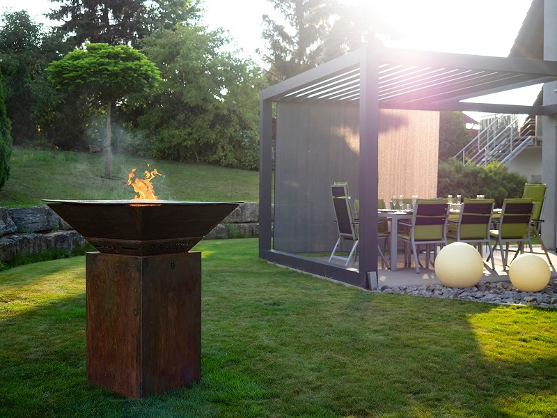 Das ist ein wirklich massiv gebautes wertiges Feuerplatten System aus howertigen Materialien top verarbeitet. Der Sockel und die Feuerwanne sind aus Cortenstahl gefertigt und optisch ein wirklicher Blickfang in jedem Garten und vor jeder Gaststätte und jedem Hotel. Deine Outdoorküche im Garten wird durch dieses System nocheinmal aufgewertet. Der BigQube ist ein Ort der Kommunikation und niemand muss nach Holzfeuer riechen.