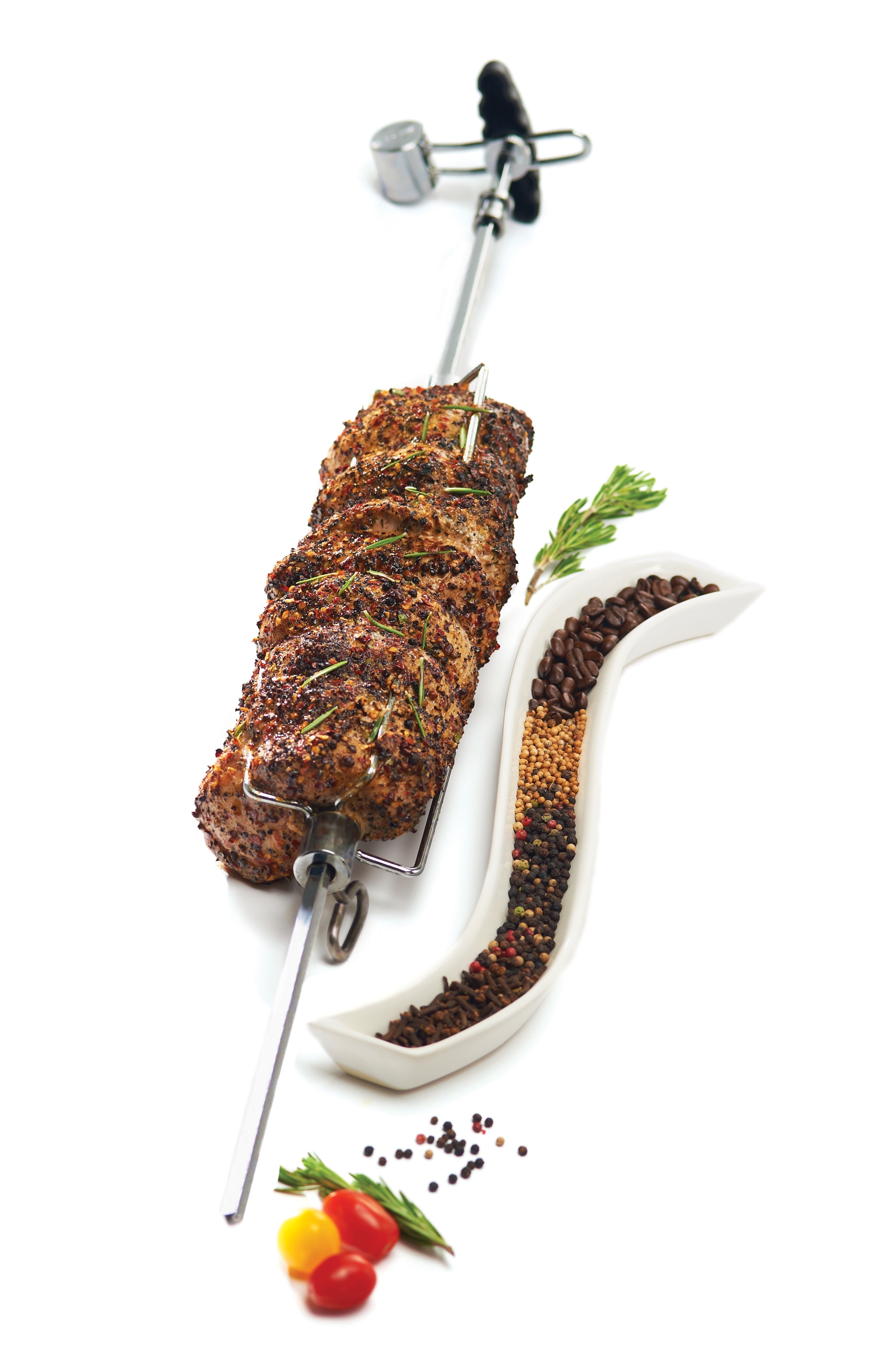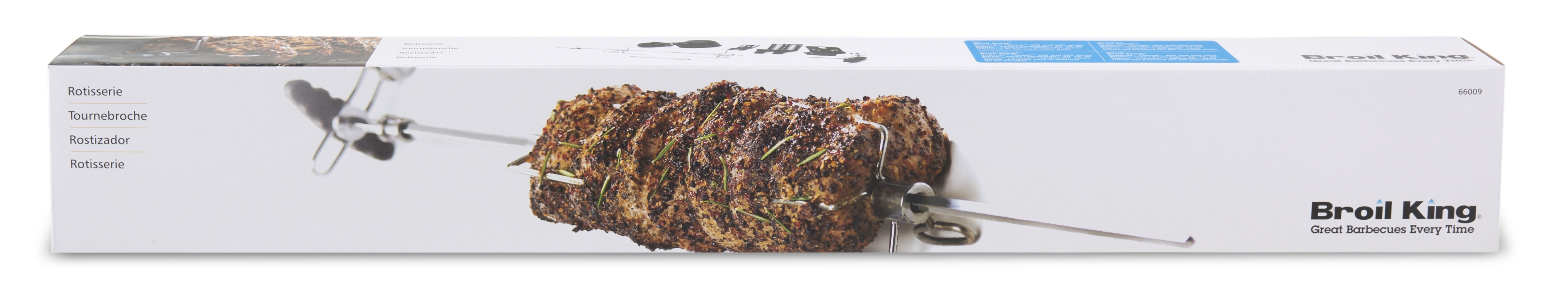 Mit der Rotisserie von Broil King kannst du das Spektrum deines Grills perfekt erweitern. Zubereitungen von kulinarische Gerichte wie z. B. Gyros, Schaschlik, Spießbraten, Hähnchen oder einen bunten Gemüsespieße werden ein Genuss für jeden Gaumen. Um ein perfektes Ergebnis des Garens zu erzielen, ist es wichtig dein Grillgut mittig auf den Spieß einzuspannen.