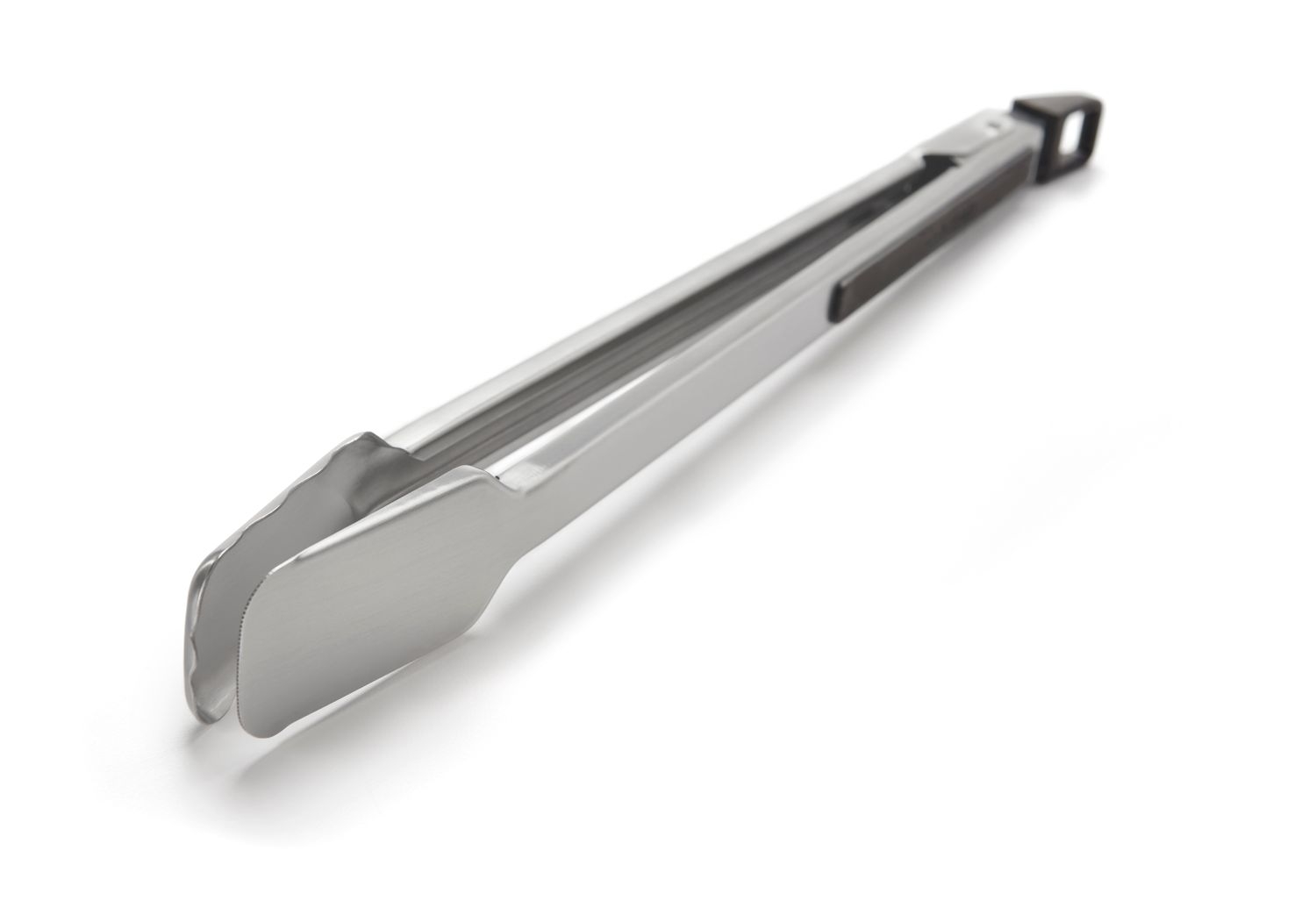 Die Broil King Grillzange Baron wurde aus Edelstahl hergestellt und sie ist aufgrund ihres geringen Gewichtes ganz besonders handlich und liegt dadurch besonders gut in der Hand. Du kannst selbst sehr große Fleischstücke wie Nackenbraten oder Rinderbrust mühelos wenden. Die spezielle Form dieser Grillzange vermittelt dir immer ein Sicherheitsgefühl und du hast dein Grillgut immer fest im Griff. Die Länge der Grillzange Baron von 45 cm stellt sicher, daß du dir nicht die Hände beim Wenden verbrennst. Genügend Abstand zur heissen Zone auf deinem Grill ist immer gegeben. Der Verriegelungsmechanismus dient gleichzeitig als Aufhänger.