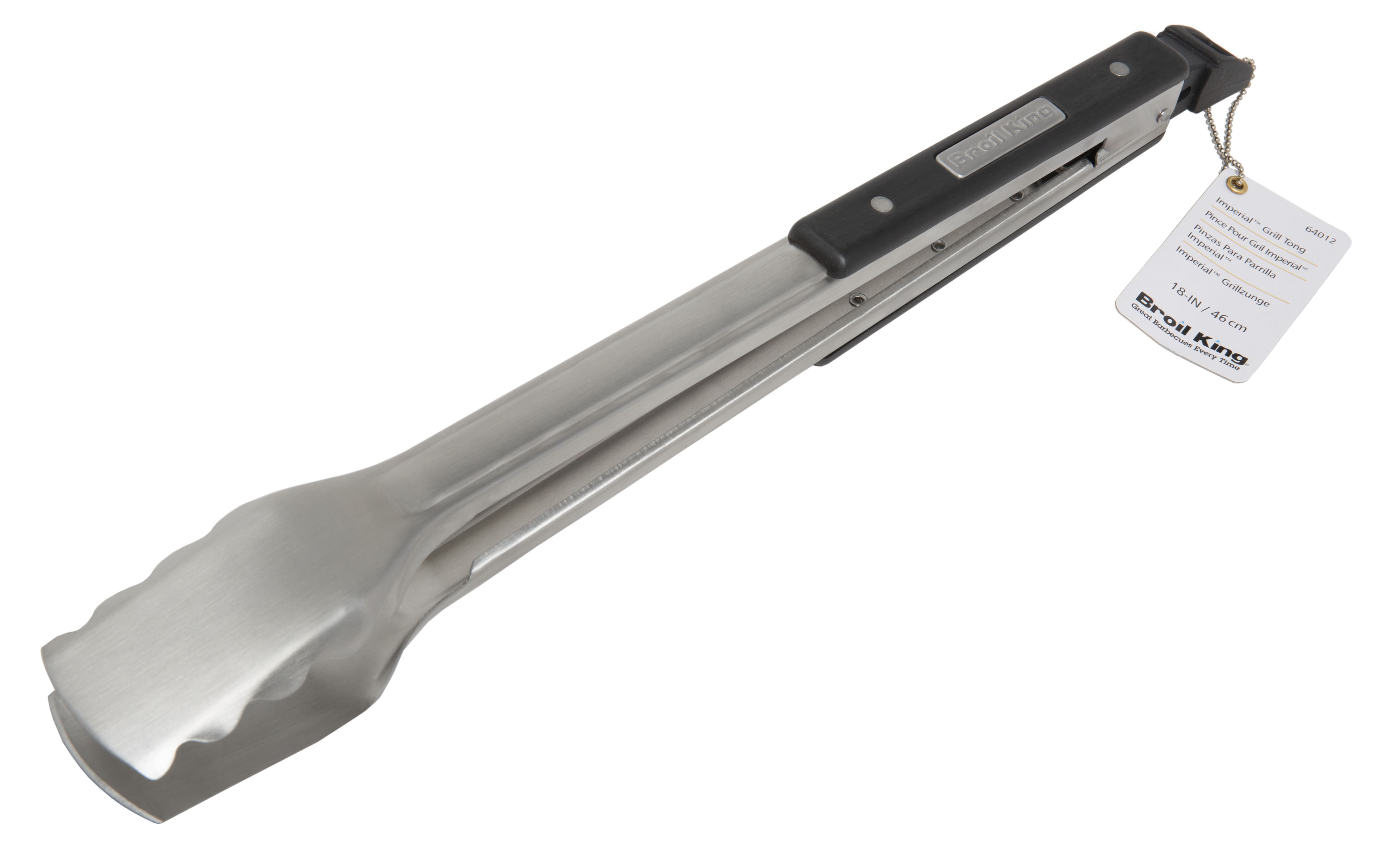 Um ordentlich zu Grillen ist es notwendig, das Grillgut in unterscheidlichen Größen zu wenden. Eine Fleischgabel ist nicht ideal dafür weil du damit das Fleisch anstichst. Somit ist eine gute Grillzange die erste Wahl und das regelmäßig genutzte Grillzubehör. Die Broil King Grillzange Imperial ist aus aus 1 mm starkem Edelstahl gefertigt und ist 48 cm lang. Der Griff aus Kunstharz macht ein hervorragendes Handling möglich. Durch den Arretiermechanismus kannst due die Broil King Grillzange Imperial geschlossen zur Seite legen.