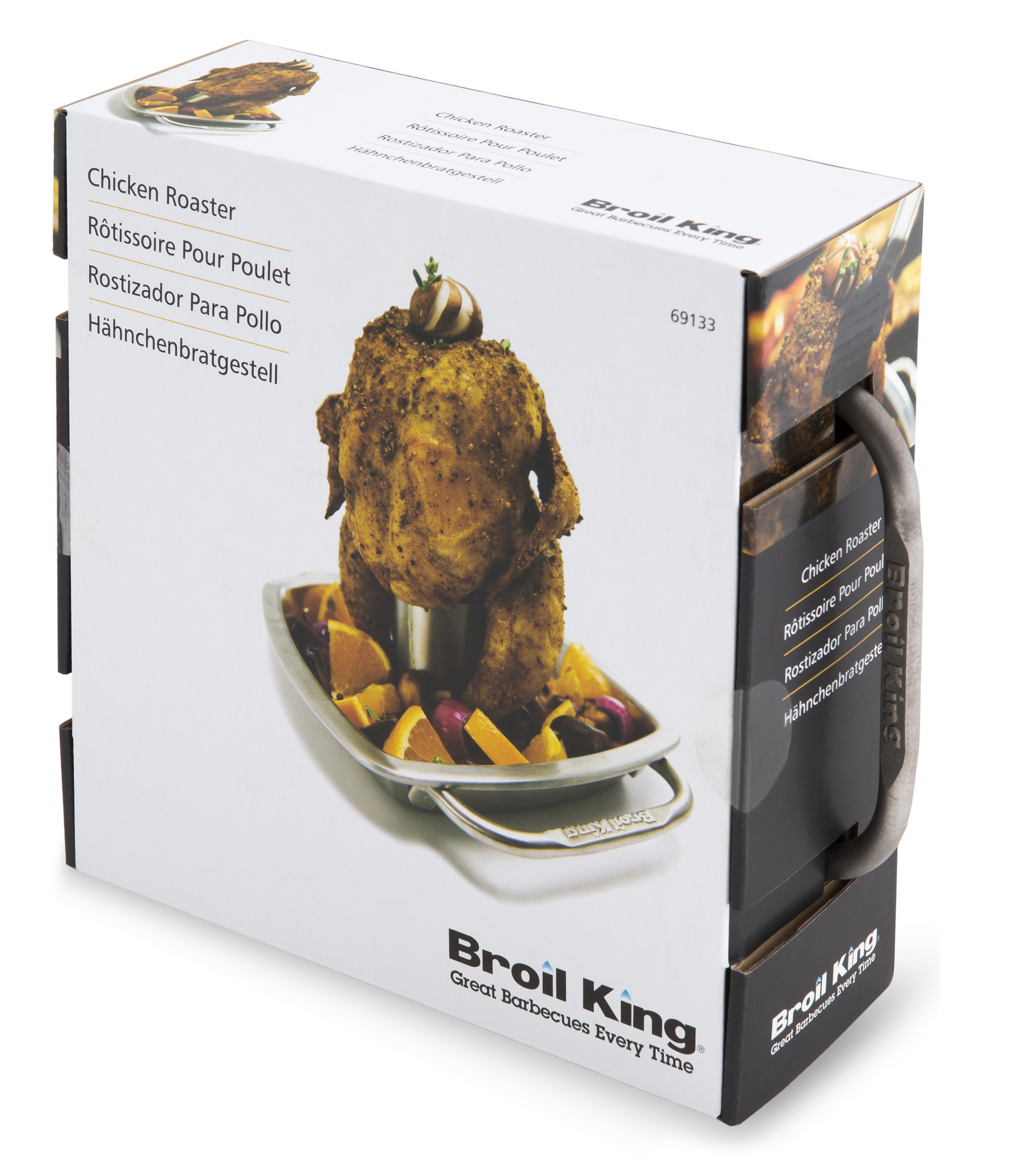Das Broil King Hähnchenbratgestell Imperial steht sehr flächig und kann auch großes Geflügel sicher aufnehmen. Dieses Bratgestell besteht aus einer stabilen 1 mm starken Tropfschale welche mit 10 mm Griffen ausgestattet ist. Der dazu gehörige Hähnchenhalter ist wie ein Becher geformt und kann den Inhalt einer Bierdose aufnehmen. Der Zubereitung eines Beer Can Chicken steht damit nichts mehr im Wege.