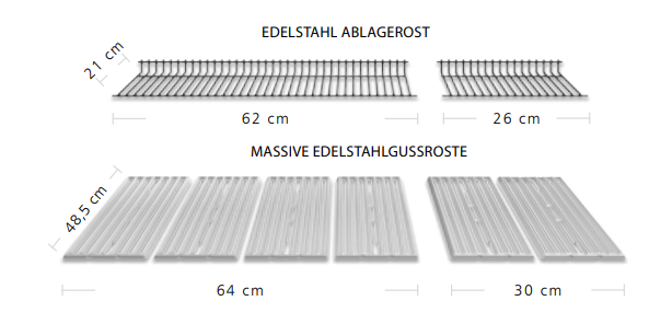 - Material Grillrost 2. Grillfläche: Edelstahlguss