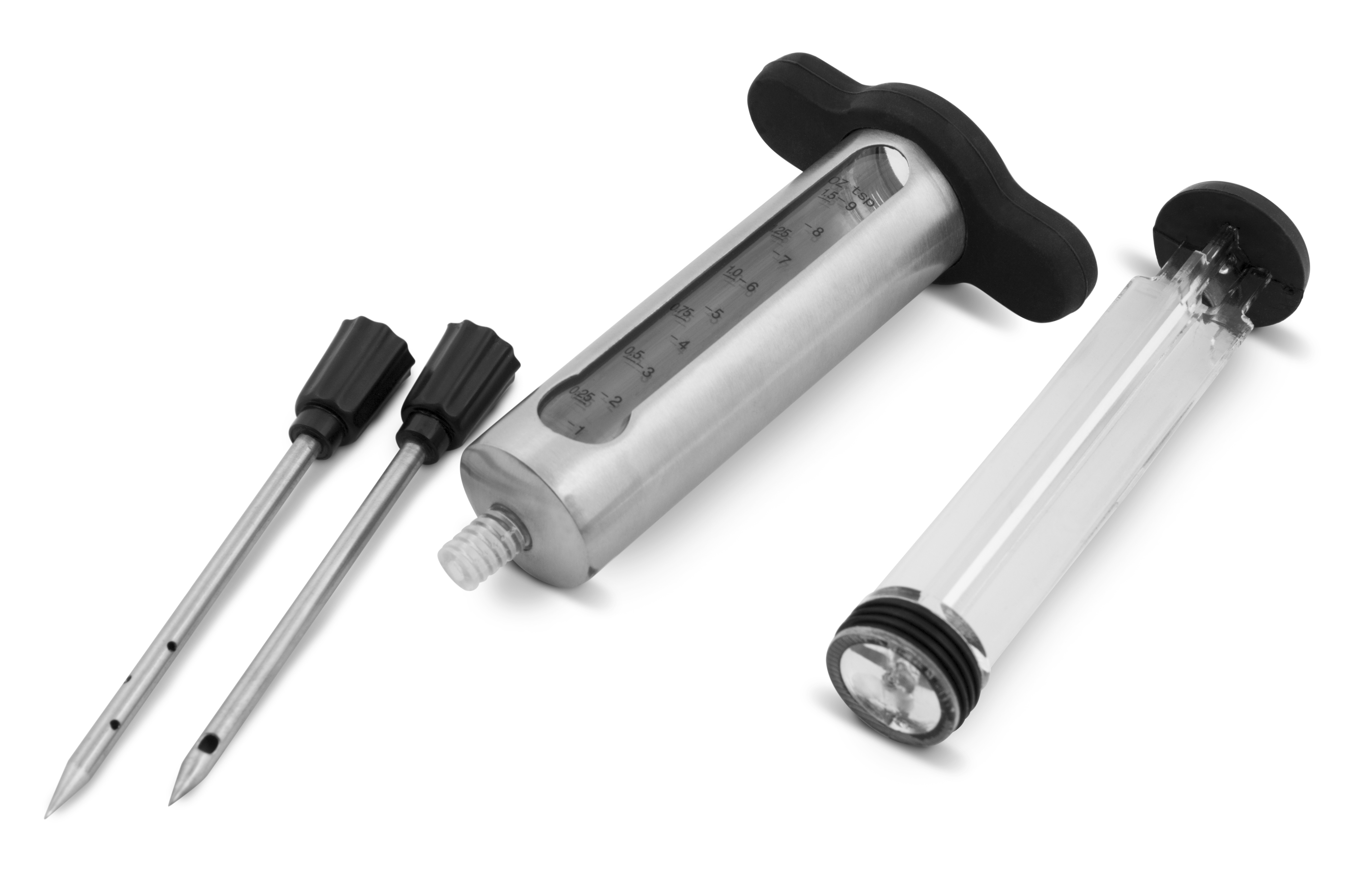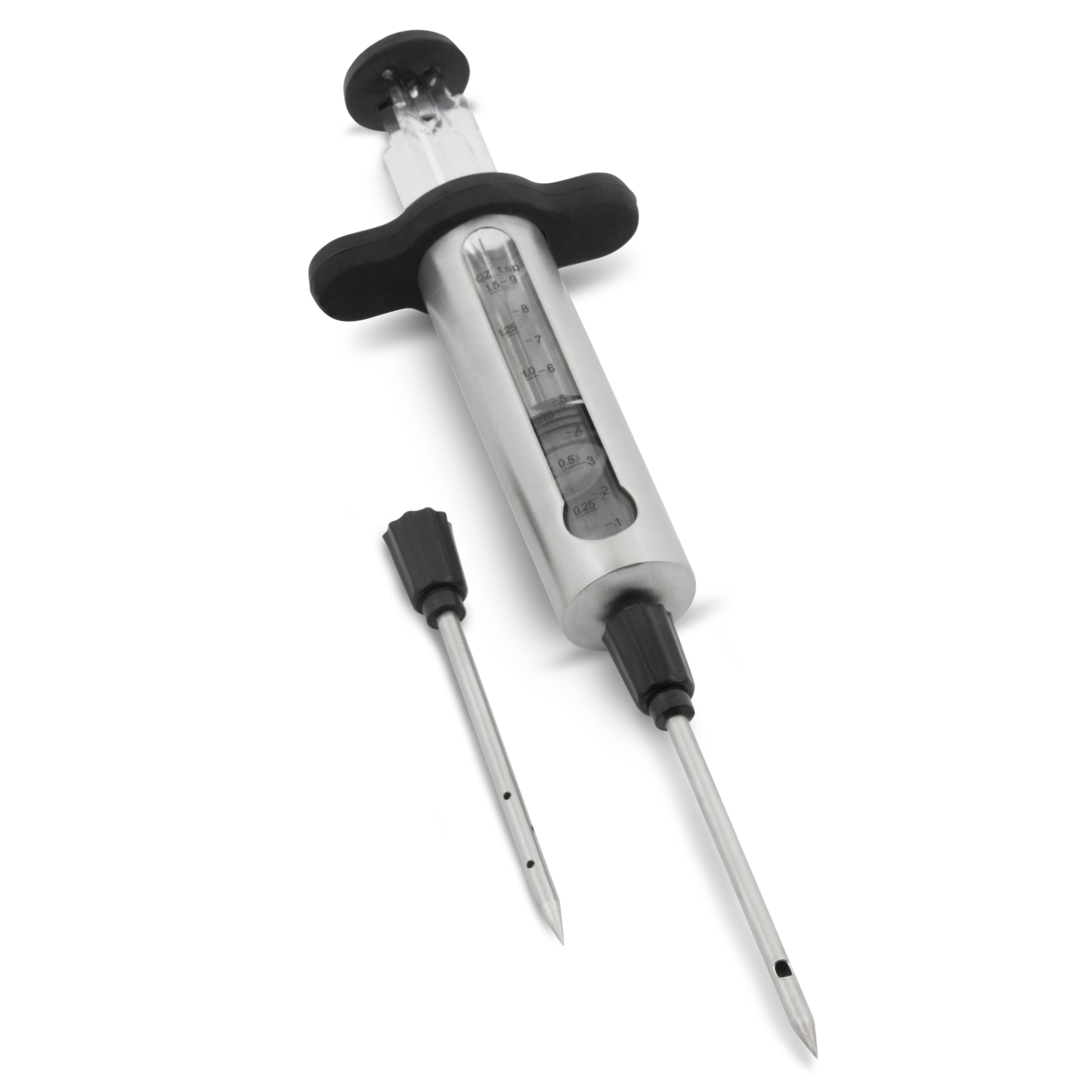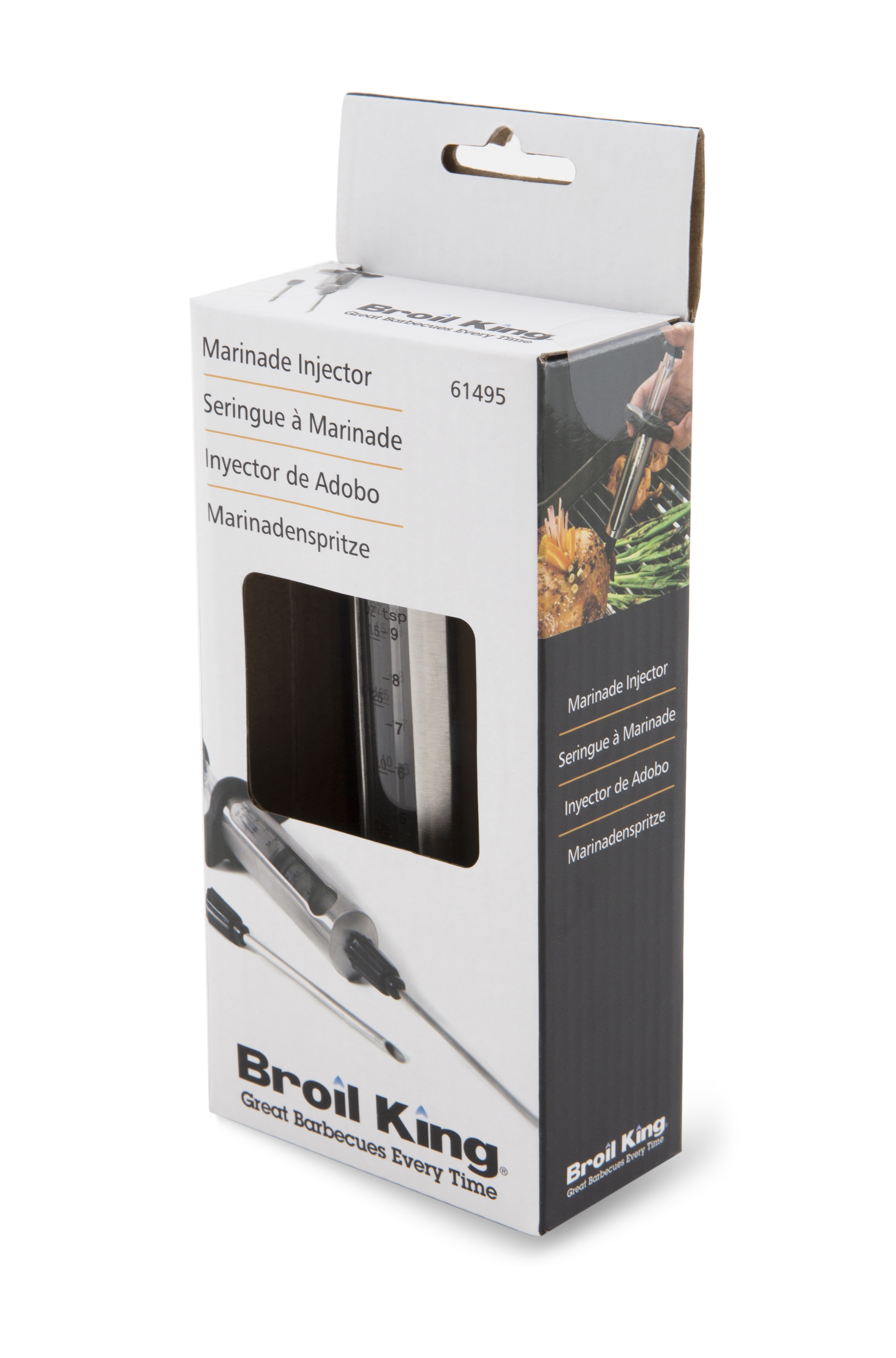 Mit der Marinadenspritze von Broil King lassen sich große Fleischstücke sehr gut mit Würzflüssigkeiten marinieren. Durch das Spritzen des Fleisches kann die Marinierzeit verkürzt werden und das Fleisch wir gleichmäßig und kräftig gewürzt.