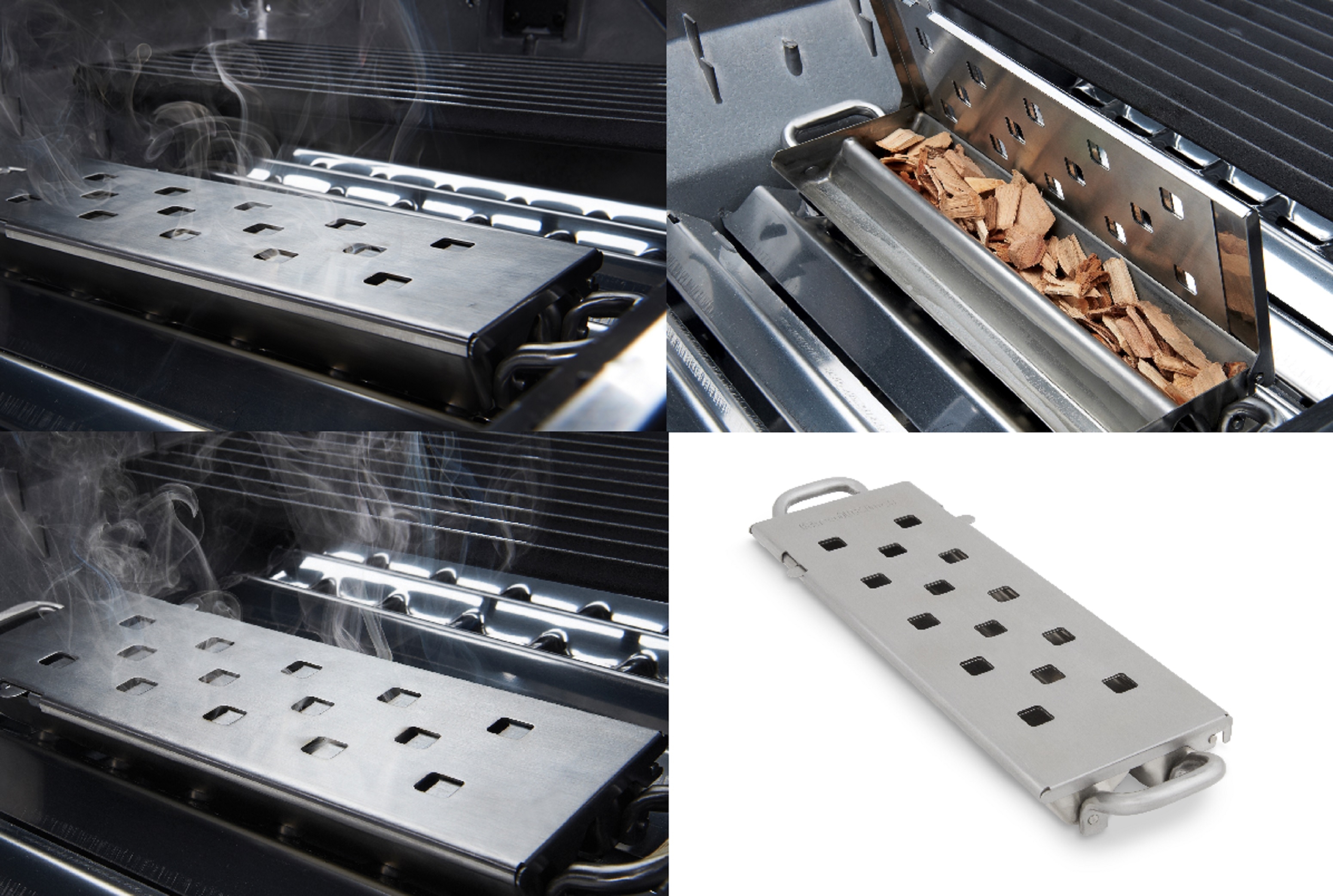Diese Smokerbox Premium von Broil King wurde entwickelt und konstruiert, um bei allen Broil King Gasgrills oben auf den Flav-R-Wave platziert zu werden. Mit den zwei, mit Holzchips, befüllbaren Kammern und einer Luftregulierung sorgt die Box für doppelte Rauchentwicklung. Diese professionelle Smokerbox qualmt nicht einfach nur, die Rauchentwicklung kann auch etwas gesteuert werden.