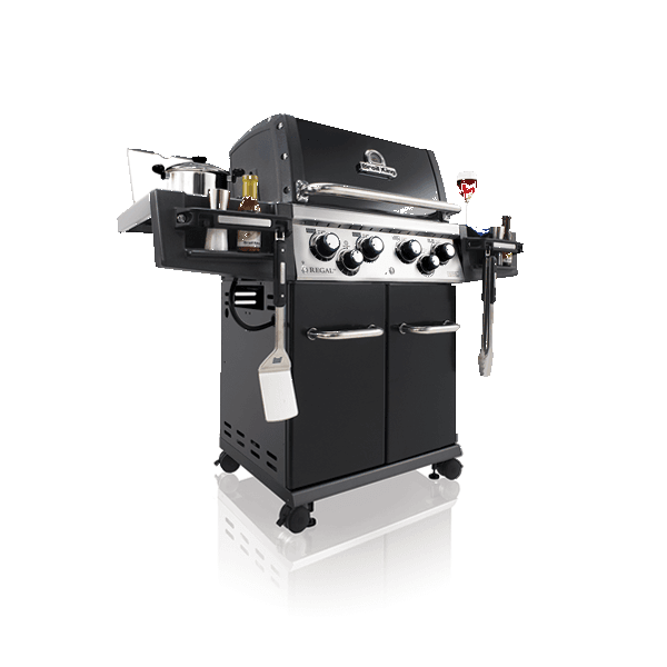 Der Broil King Regal 490 Black ist ein Gasgrill mit Vollausstattung. Vier Edelstahl-Stabbrenner, eine Seitenkochplatte, ein Spießbratenbrenner und das Drehspieß-Set mit Elektromotor machen den Regal 490 Black zu einem Klasse-Gasgrill mit Rundum-Sorglos-Paket. BBQ Profis sind von diesem Gerät begeistert. Der Regal 490 ist in seinem schwaren Design auch optisch ein Hingucker. Der Broil King Regal 490 Black ist ein Gasgrill für qualitätsbewusste BBQ-Profis mit hohen Ansprüchen. Aber auch ambitionierte BBQ-Fans finden mit dem Regal das richtige Grillgerät.