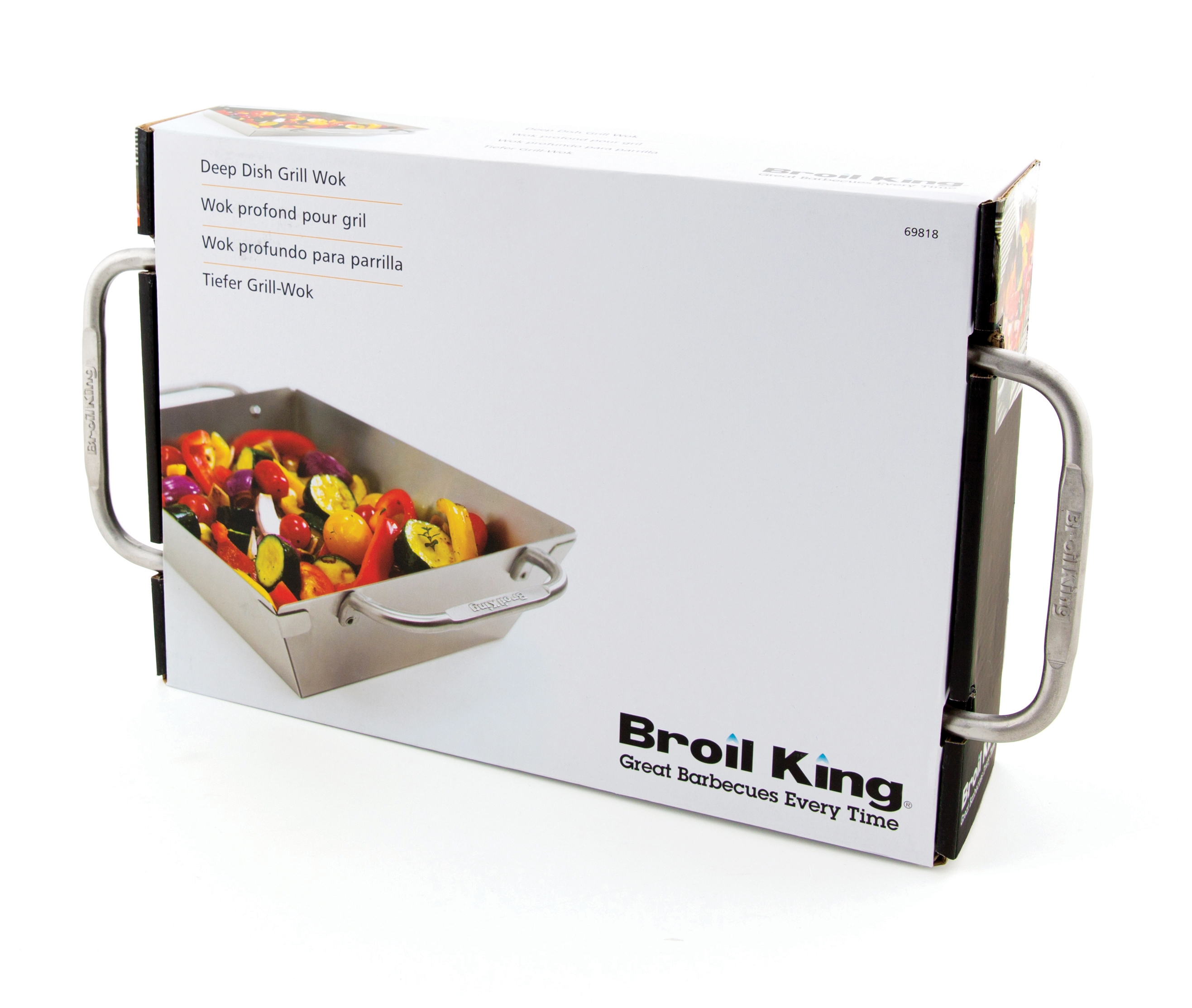 Der Broil King Wok Imperial ist aus 1,2 mm dickem Edelstahl gefertigt und mit 10 mm dicken Edelstahlgriffen versehen. Damit ist dieses robuste Zubehör ideal für den Einsatz an Ihrem Grillgerät geeignet. Die quadratische Perforation am Boden des Woks verhindert ein Anhaften des Grillgutes und du kannst damit sogar Röstaromen erzeugen.
