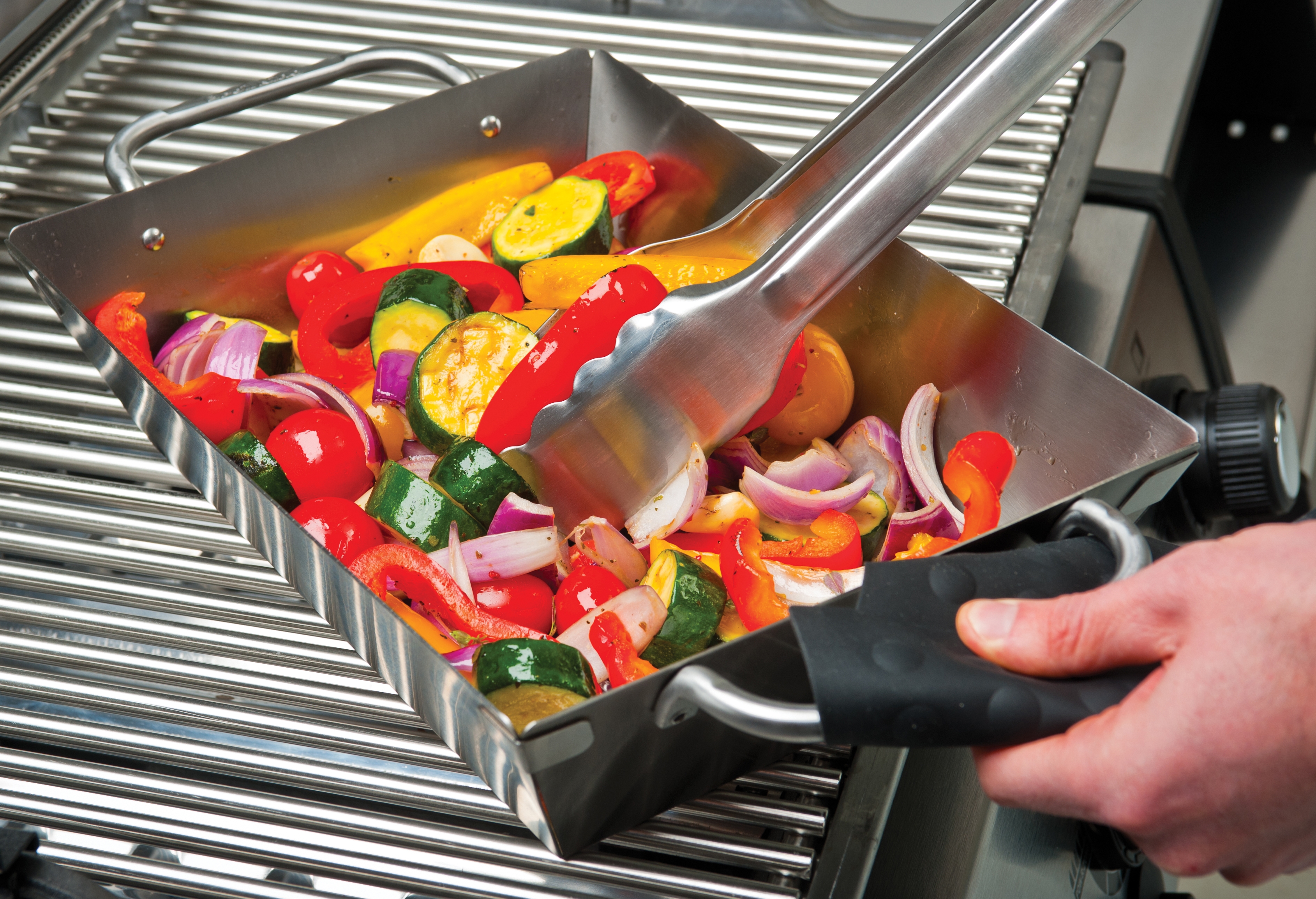 Dieser Grill-Wok von Broil King bietet dir viele Zubereitungsmöglichkeiten und sorgt aufgrund seines extra tiefen Designs dafür, dass alles im Wok bleibt. Gemischtes Gemüse kannst du prima darin zubereiten, sogar mit Röstaromen. Schneide dir einfach dein Gemüse ist einer Stückelung deiner Wahl zurecht und gibt es in den Wok. Stell den Wok auf die Grillfläche deines Gasgrills und schon kannst du loslegen. Wende das Gemüse beim Garen immer mal wieder damit du einen gleichmäßigen Garzustand bekommst.