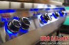 Seine gigantischen Maße und die Tatsache, dass der FireMagic Echelon E1060i Einbaugrill zu 100 % aus Edelstahl mit viel Detailverliebtheit gamacht wird, überzeugt jeden Skeptiker. Die riesige Grillfläche (122 x 56 cm) erlaubt es, für viele Gäste zu grillen und hat mehr als genug Platz für indirektes Grillen. Durch die Aromaroste aus dickem Edelstahl ist die Gefahr eines Fettbrandes nahezu ausgeschlossen und sie sorgen zusammen mit den Brennern für eine gleichmäßige Hitzeverteilung auf der gesamten Grillfläche. Auf der Aromaroste kann gleichzeitig Fleischsaft und Fett verdampfen und dadurch zusätzlich Aroma im Garraum bilden. Aus diesem Grund kann die Fettauffangschale klein gehalten werden. Diese lässt sich bequem und bedienfreundlich nach vorn zum Reinigen herausziehen. Die vier rostfreien Gasbrenner sind aus Edelstahlguß gefertigt und beeindrucken jeden der nachhaltige Qualität zu schätzen weiß. Diese Brenner haben eine 6 mm dicke Wandungsstärke und eine Gesamtleistung von 33,7 Kilowatt (ca. 45 PS). Die zwei Infrarot Heckbrenner für den Drehspieß und eine gesondert herausnehmbare Räucherbox sind weitere prima Ausstattungsmerkmale. Dieser Gasgrill als Built in Variante verfügt über beleuchtete Bedienelemente und eine automatische Halogen Garraumbeleuchtung. Somit hat man auch bei Dämmerung, wenn es mal wieder etwas später wird, alles im Blick.