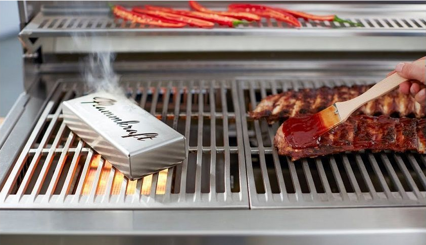 Die Flammkraft Räucherbox wird mit Räucherchips deiner Wahl gefüllt. Die verschlossene Räucherbox stellst du für ca. 30 Minuten ins kalte Wasser, damit die Räucherchips besser glühen und nicht zu stark anfangen sich zu entzünden. Die nasse Räucherbox gut abtropfen lassen und direkt im Grill über einem Brenner platzieren. Damit die Räucherchips anfangen zu rauchen den Brenner auf tiefer Temperatur drehen. Mit dem Regler kannst du die Rauchmenge steuern, nur solltest du ihn nie voll auf drehen. Die Räucherbox kannst du am Besten mit einer Grillzange verschieben oder entfernen.