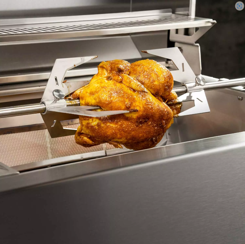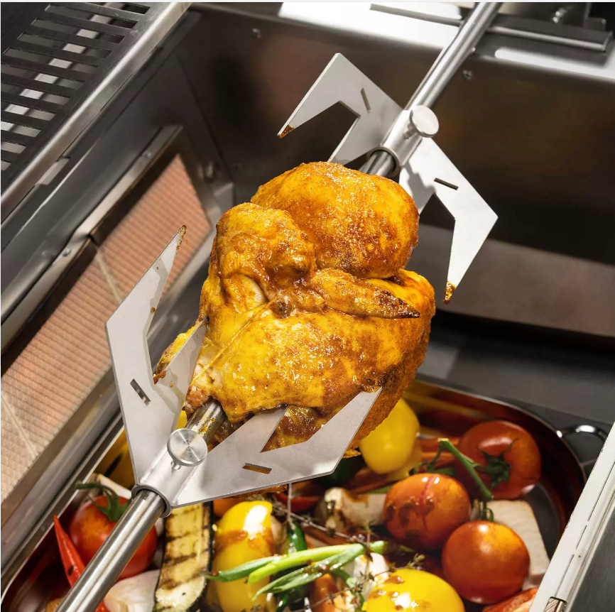 Ob knusprige Hähnchen, Gans oder der klassische Dönerspieß, mit Hilfe der elektrisch angetriebenen (230V) Rotisserie und der kräftigen Brenner lassen sich mühelos fantastische Ergebnisse erzielen.