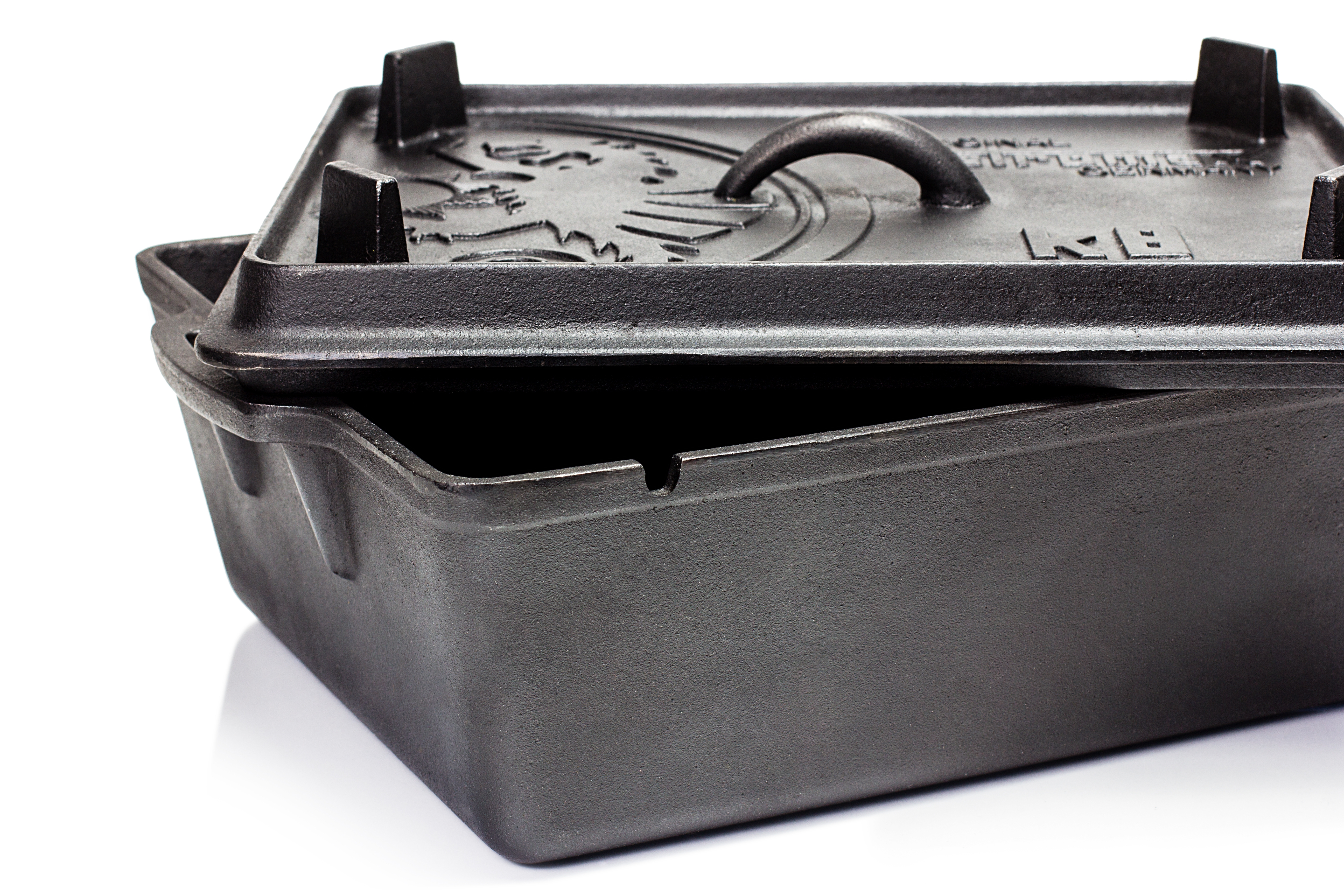 Die Petromax Kastenform K8 ist perfekt für Brot, Kuchen, Auflauf und Co. Der Deckel der gusseisernen Form lässt sich in der Outdoor-Küche mit Glut oder Briketts bestücken, sodass eine hervorragende Rundumwärme entsteht, wie auch bei einem Feuertopf. Im Backofen funktioniert die Guss-Kastenform als Bräter oder für leckeren Nachtisch.