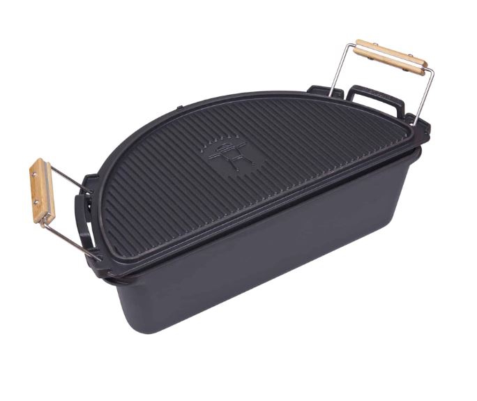 Der Monolith SGS Feuertopf Set LeChef ist der Gusstopf für das Smart-Grid-System in der typischen Halbmondform und kann ganz leicht in das SGS eingehängt werden. Durch die unterschiedlichen Oberflächen vom Deckel, dient er auch als Grillplatte und hast du viele Möglichkeiten der Zubereitungen deines Grillguts. In dem Monolith Feuertopf gibt es vielfältige Zubereitungsmöglichkeiten von Brot backen, deftigen Eintöpfen, Grünkohl oder auch Sauerkraut ist alles möglich. Du kannst auch deinen Gästen einen Braten in dem Monolith SGS Feuertopf Set LeChef zubereiten. Durch einen innenliegenden Rost aus Edelstahl ist es dir möglich eine zweite Ebene im Topf zu schaffen.