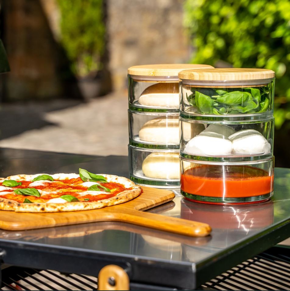 Mit dem Ooni Stapelgefäß-Set kommt eine neue Möglichkeit für ein leichtes und sauberes Aufbewahren deiner Zutaten für deine selbstkreierte Pizza. Das Ooni Stapelgefäß-Set besteht aus 3 langlebigem Borosilikatglasschalen mit einem Bambusdeckel und abnehmbaren Silikonabdichtungen. Die einfache Reinigung des Ooni Stapelgefäß-Set kann im Geschirrspüler stattfinden. Ob der Pizzateig oder der Belag... es ist platzsparend und sauber aufbewahrt!!!