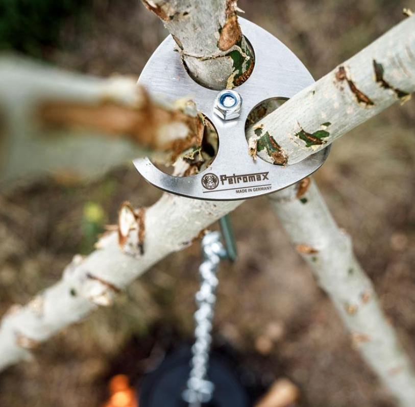 Der Petromax Dreibein-Ring ist für deine Abenteuer im Freien ohne großen Aufwand perfekt. Schnell in deinem Feuertopf oder deiner Petromax Kanne den Dreibein Ring inkl. Kette und Haken verstaut und du kannst es jederzeit unterwegs verwenden. Dafür sind nur 3 lange und stabile Äste von Nöten, um draußen eine selbstgebaute Kochstelle zu errichten.