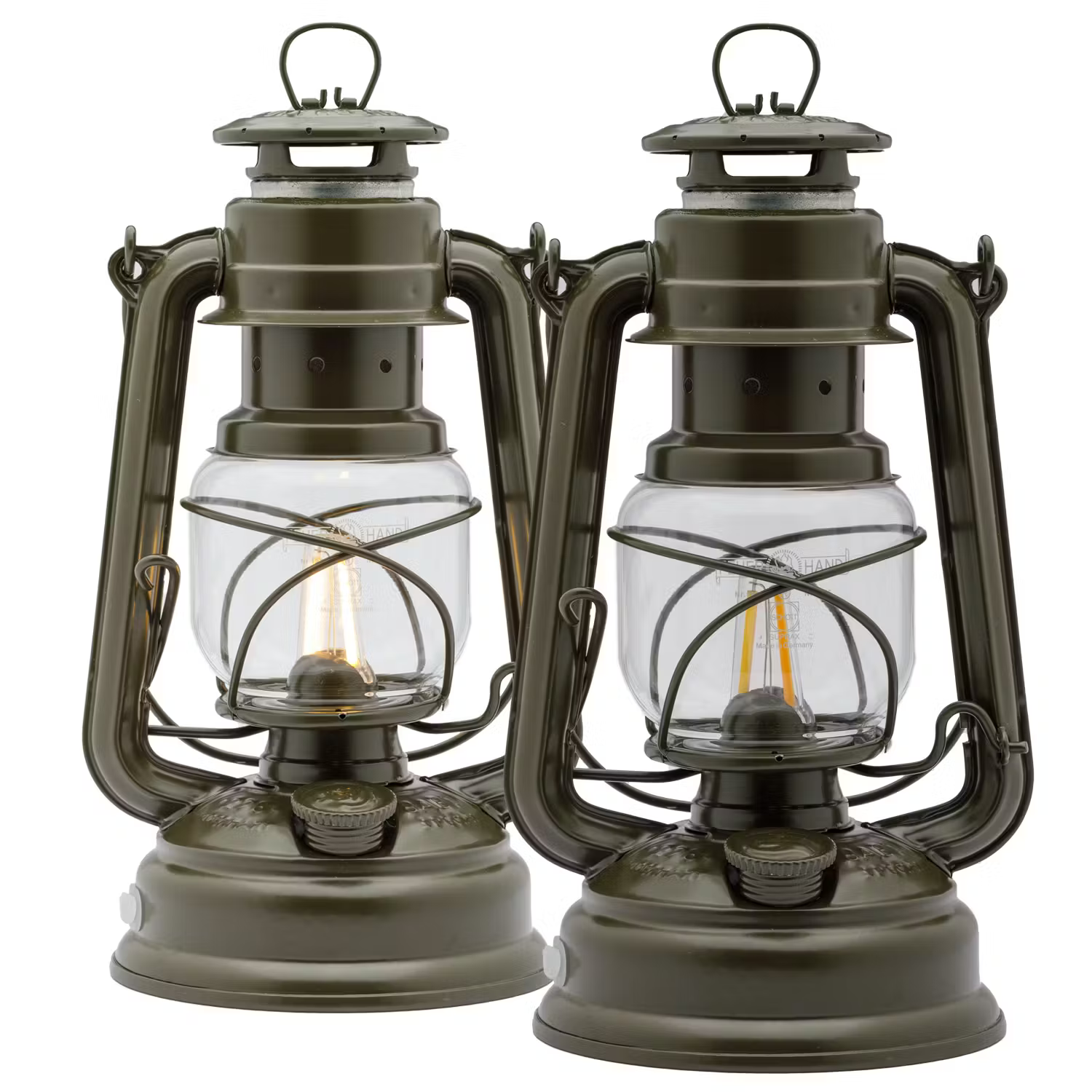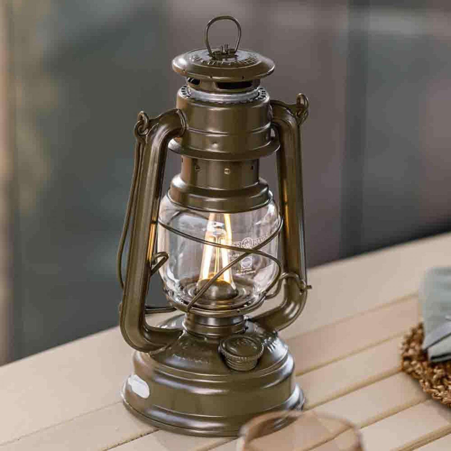 Die Feuerhand LED Laterne ist die LED-Version der seit 1893 in Deutschland hergestellten Laterne, die neue Technik mit den vertrauten Komponenten des Originals verbindet. Das warmweiße Licht ist stufenlos dimmbar und erleuchtet den Balkon, die Terrasse, den Wintergarten oder den Stellplatz auf dem Campingplatz. Die Laterne ist mit handelsüblichen Batterien oder Akkus zu bestücken und dadurch einfach zu handhaben. Sie ist aus galvanisch verzinktem Stahlblech gefertigt und wird, wie die Petroleumlaterne, ebenfalls in Hohenlockstedt produziert.
