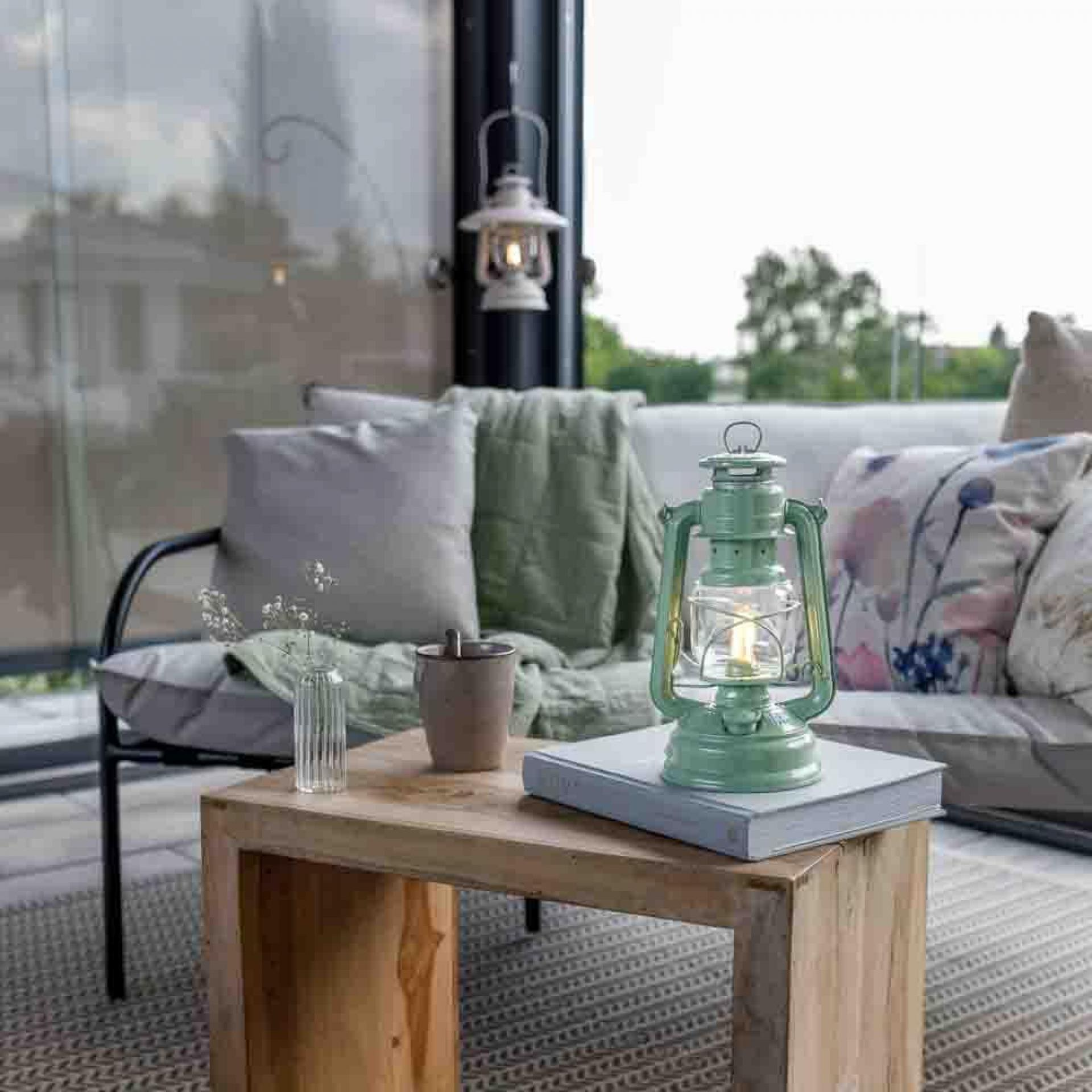 Die Feuerhand LED Laterne ist die LED-Version der seit 1893 in Deutschland hergestellten Laterne, die neue Technik mit den vertrauten Komponenten des Originals verbindet. Das warmweiße Licht ist stufenlos dimmbar und erleuchtet den Balkon, die Terrasse, den Wintergarten oder den Stellplatz auf dem Campingplatz. Die Laterne ist mit handelsüblichen Batterien oder Akkus zu bestücken und dadurch einfach zu handhaben. Sie ist aus galvanisch verzinktem Stahlblech gefertigt und wird, wie die Petroleumlaterne, ebenfalls in Hohenlockstedt produziert.
