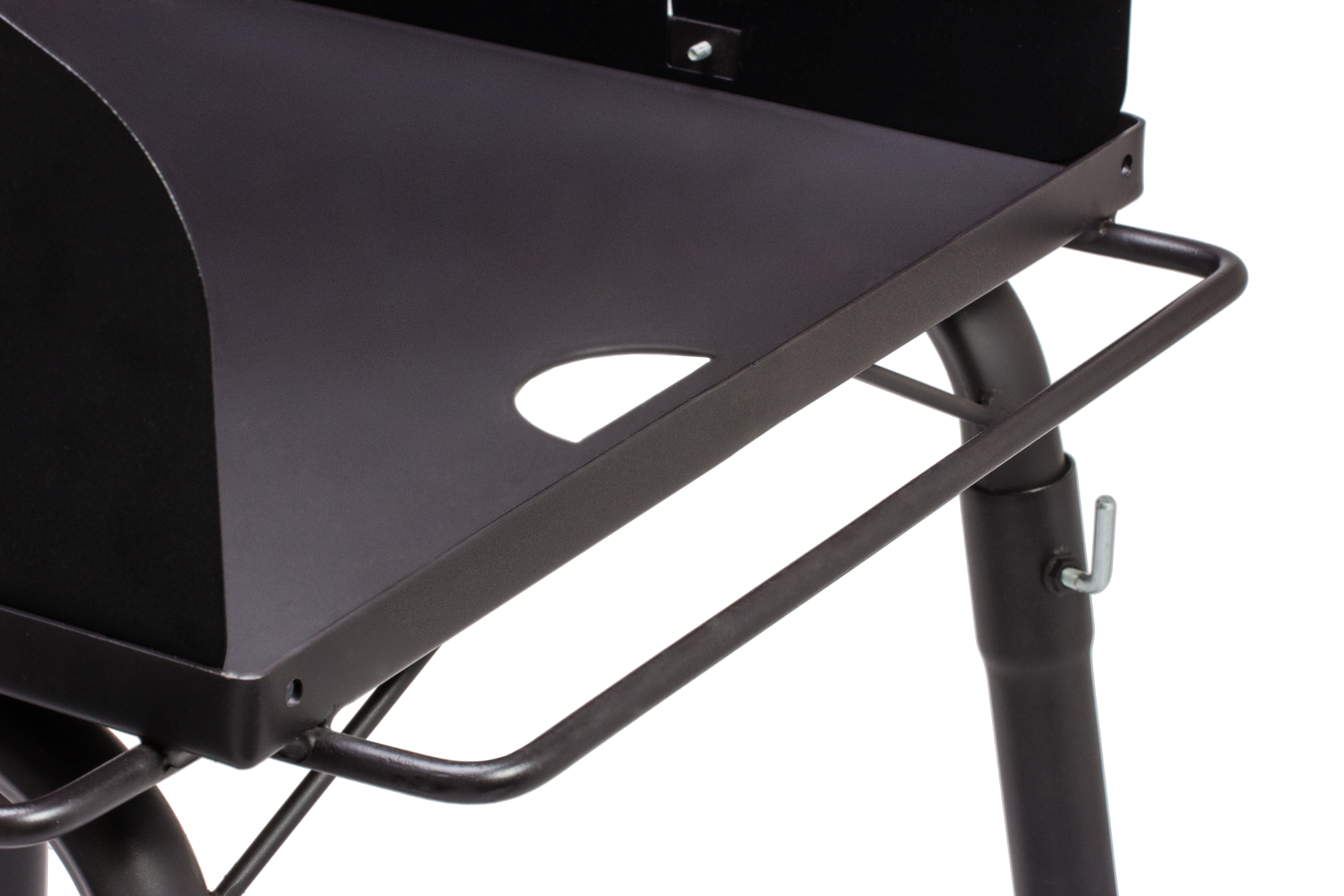 Während des Kochens kannst du bequem vorne und an den Seite Kohlenzange, Geschirrtuch, Grillhandschuhe etc. in Griffweite anbringen. Reinige deinen Feuertopf Tisch schnell und einfach durch eine Aussparung im vorderen Bereich der Arbeitsfläche: Asche und Kohlereste ausfegen - fertig.