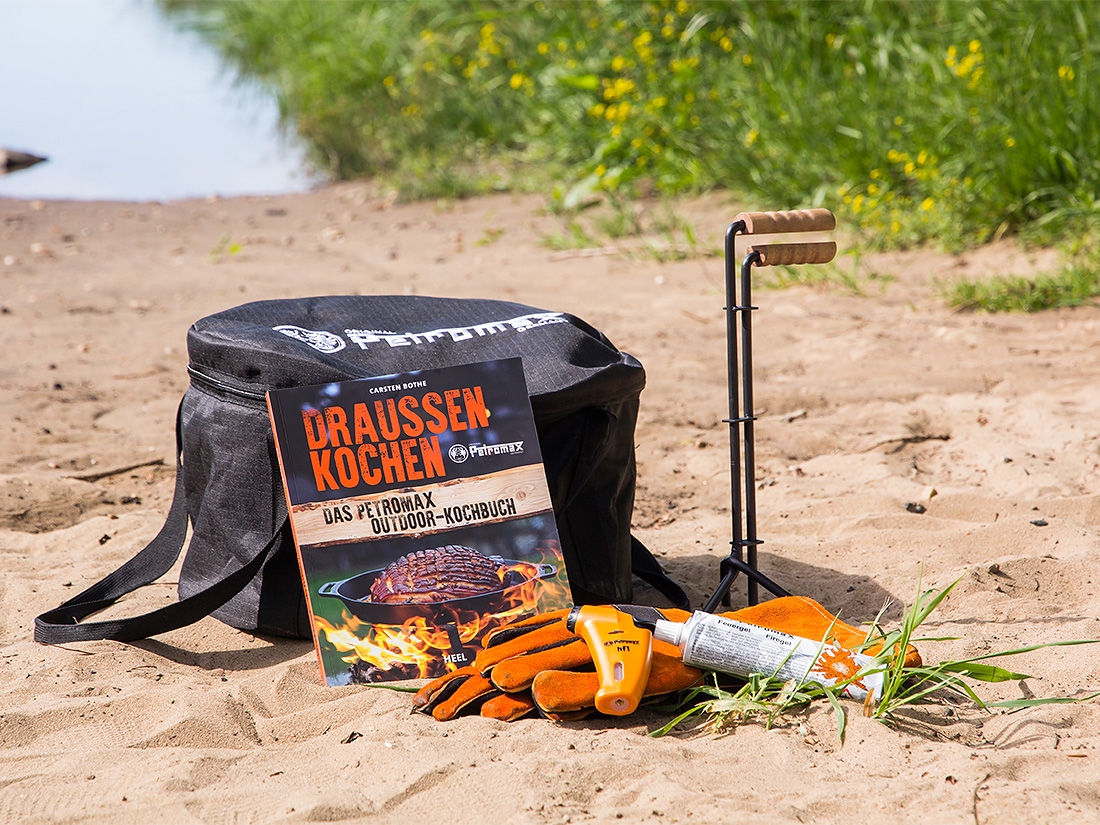 Frische Luft, ein warmes Feuer und das richtige Equipment: Was sich mit Feuertopf und -pfanne, Perkolator, Kastenform und Co. alles machen lässt, zeigt Carsten Bothe in dem Petromax Outdoor-Kochbuch „Draußen Kochen".