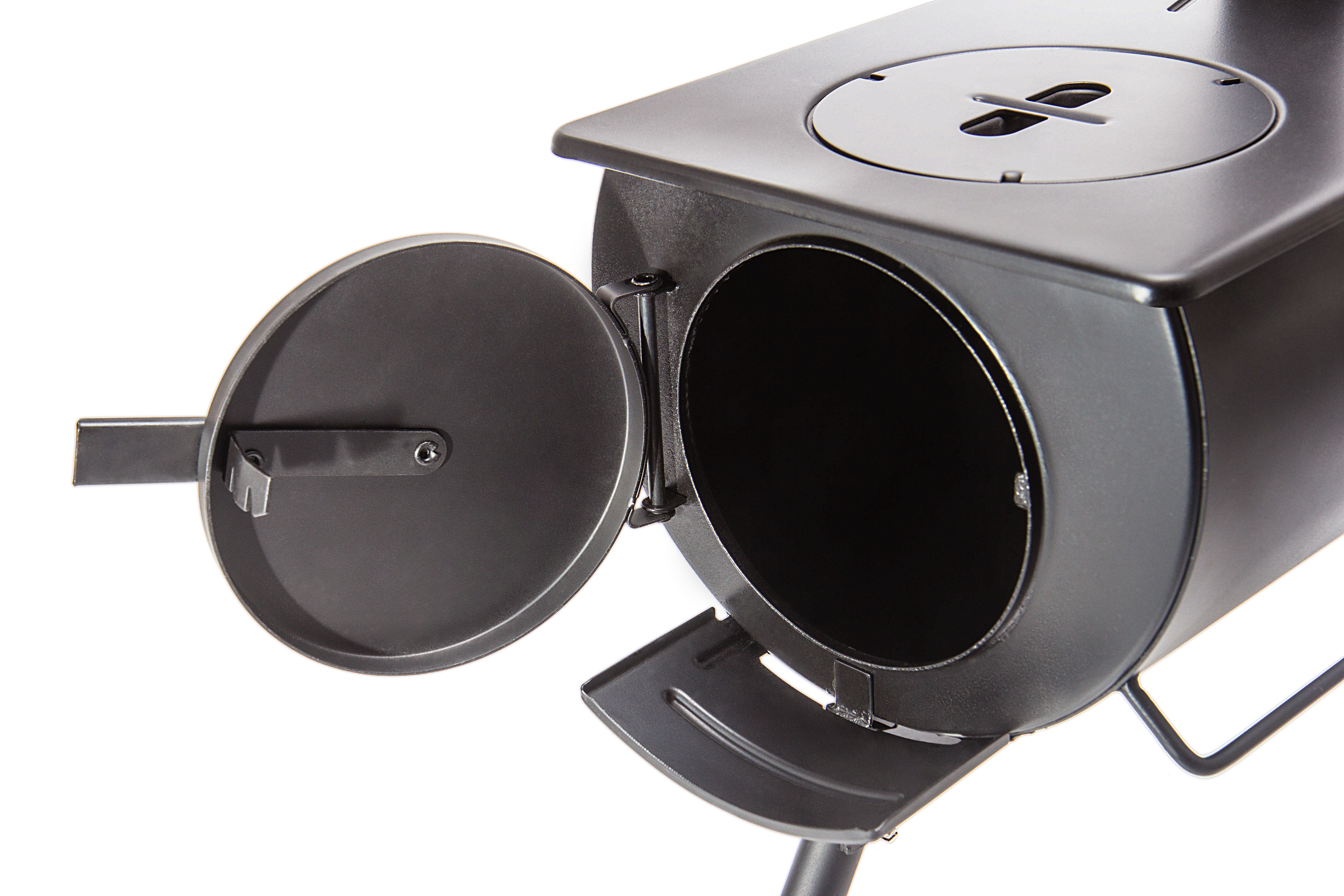 Unterwegs mit dem Zelt und das Lager am See aufgeschlagen: Sobald die frische Abendluft aufzieht, heizt der Petromax Loki 2 das Zelt zuverlässig auf. Gleichzeitig dient der Zeltofen als stabiler Herd und als Draußen-Kochstelle. Dank seiner cleveren Konstruktion lassen sich die Beine des Loki 2 einklappen und die Ofenrohrteile im Inneren des Korpus platzsparend verstauen. So kannst du die Kombination aus Kochstelle und Heizung ganz einfach überallhin mitnehmen.