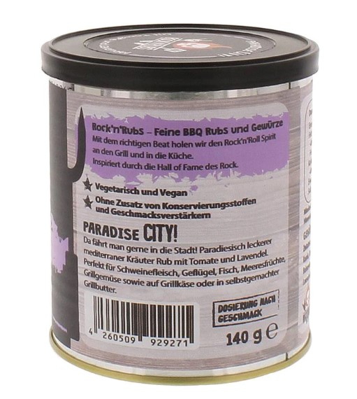 Der Rock'n'Rubs Paradise Cityist ein mediterraner Kräuter Rub mit Tomate und Lavendel.