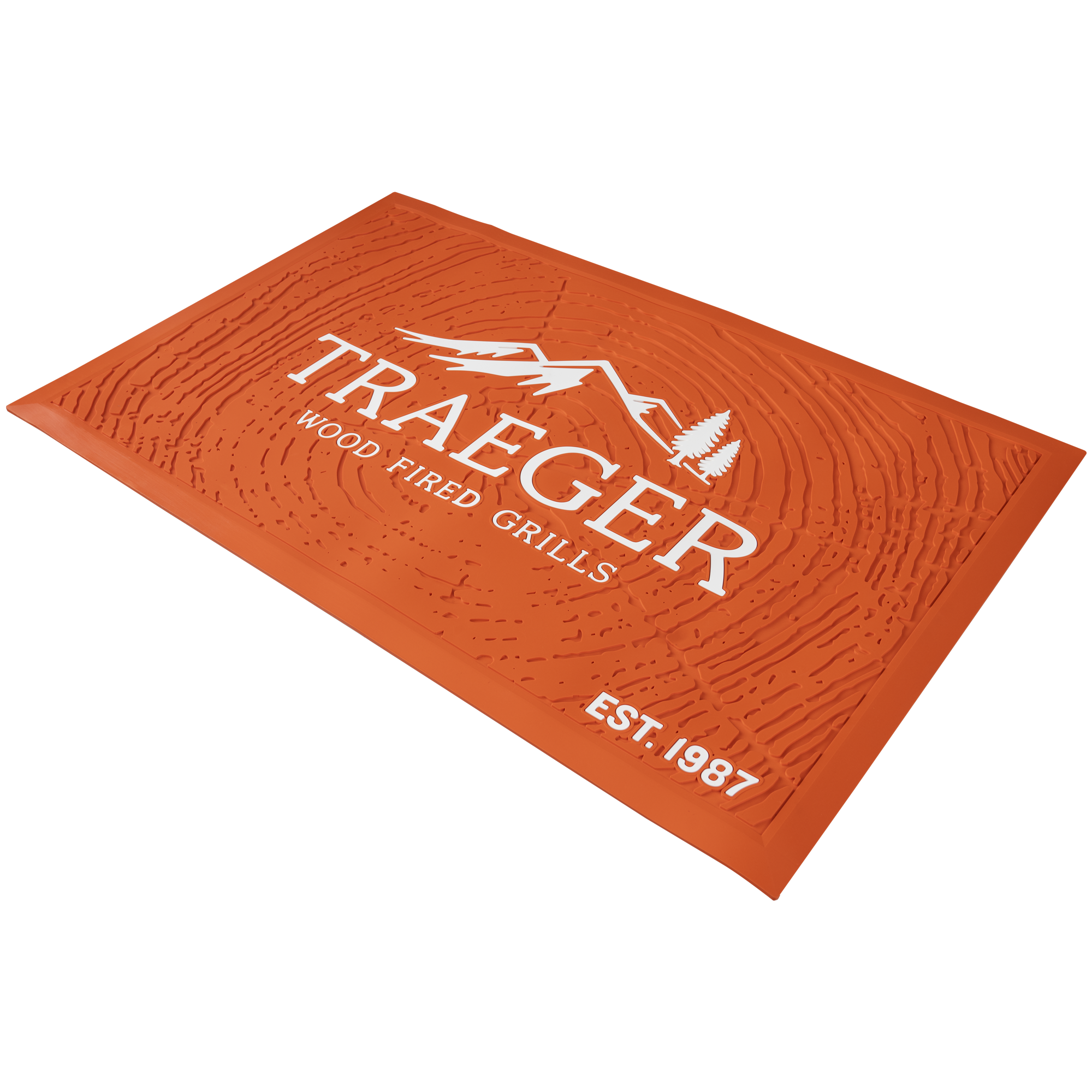Die coole Bodenschutzmatte in leuchtendem orange von Traeger passt genau zu deinem Traeger Pelletgrill. Wo gegrillt wird tropft und spritzt schon mal etwas Fett oder dir fällt etwas fettiges herunter. Schon ist der tolle Bodenbelag versaut. Stell deinen Pelletgrill auf diese colle Matte und die Gefahr von Fettflecken ist gebannt und es sieht auch noch richtig cool aus.